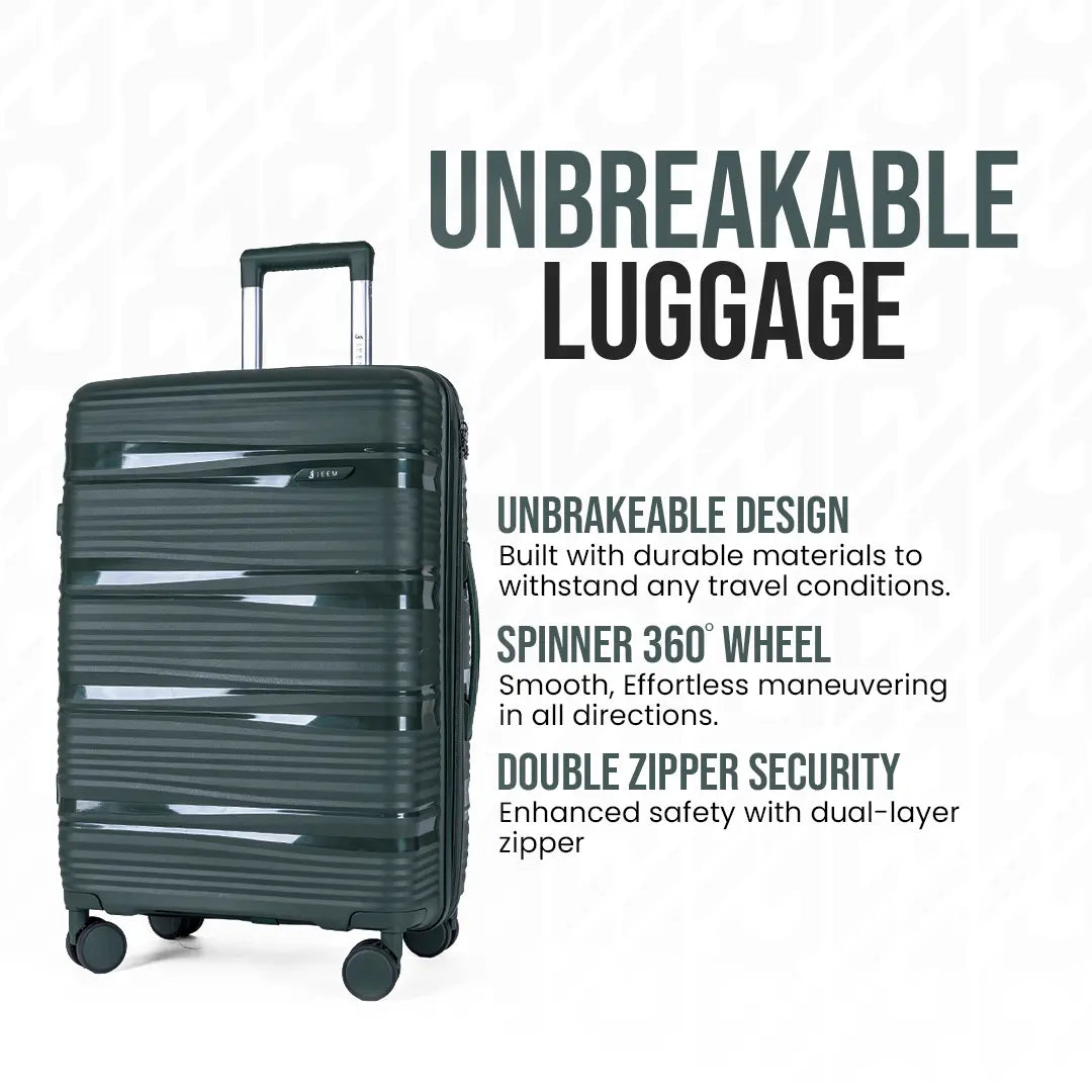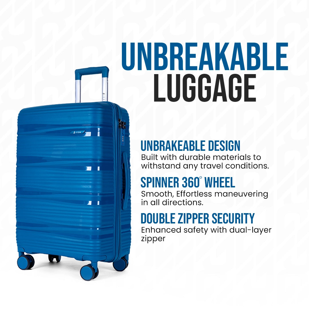 Made from high-quality Polypropylene (PP), these suitcases are impact-resistant, water-resistant, and built to last—without unnecessary weight.